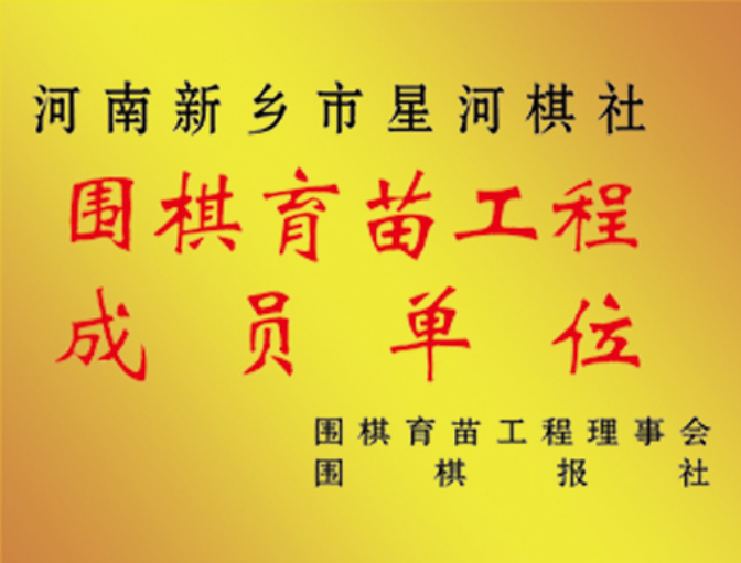 优秀学员:咸绍玉5段。市少儿围棋锦标赛高段组冠军、市弈友杯围棋大赛高段组亚军、省段位赛(新乡赛区)初升二段组冠军、首届名人赛D组冠军、市少儿围棋赛幼儿组冠军。